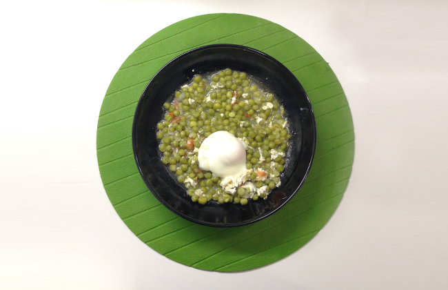 Hoje para o almoço trago ervilhas com ovos escalfados.